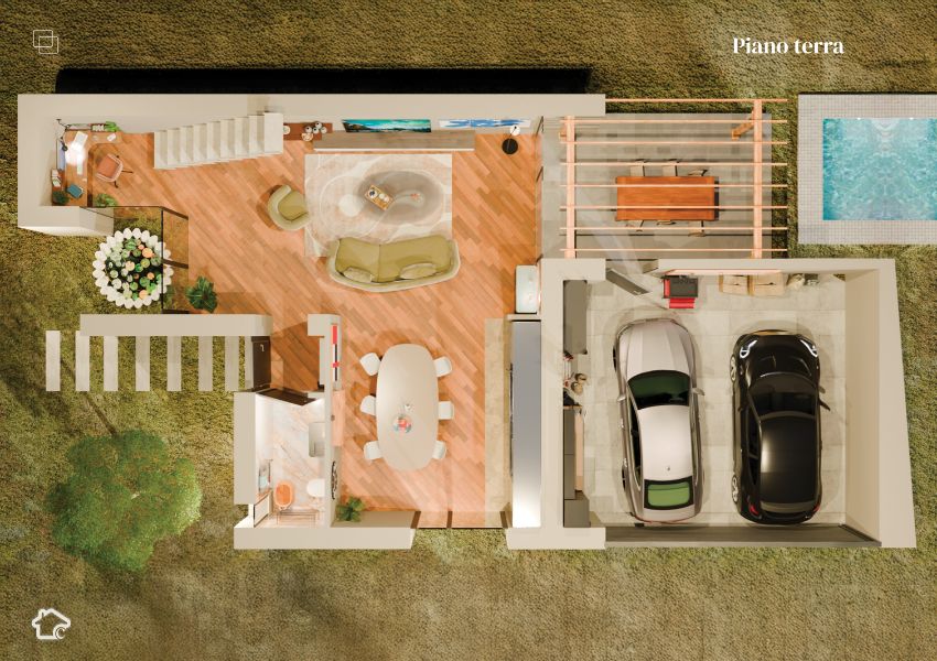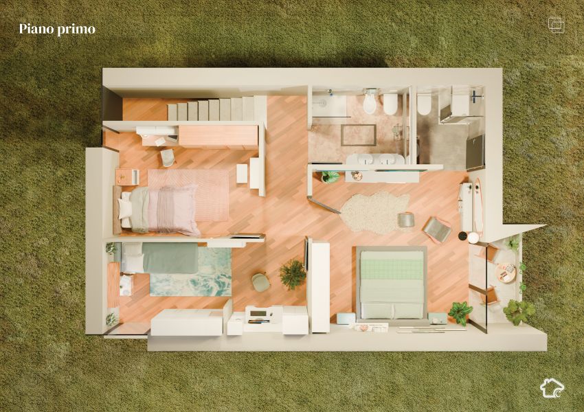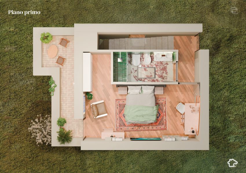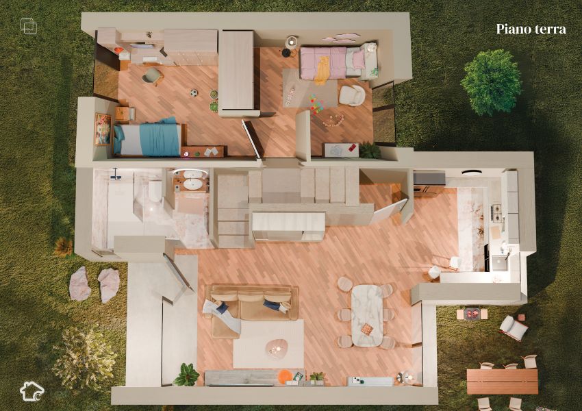 Ogni abitazione è progettata con soluzioni che garantiscono comfort e sostenibilità: isolamento a cappotto, pannelli fotovoltaici integrati nella copertura e materiali ad alte prestazioni energetiche.